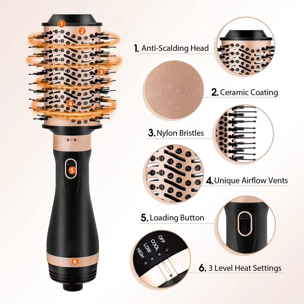 Escova de ar quente multifuncional, uso duplo para alisar e modelar, secagem rápida 4 em 1