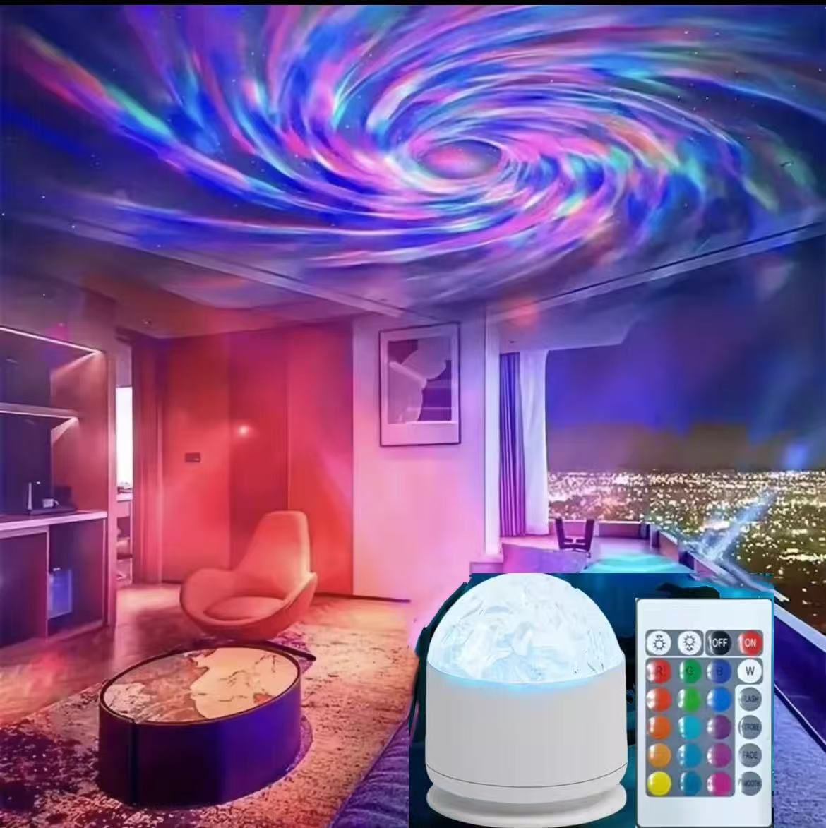 Luz ambiente com ondulação de água, candeeiro de mesa romântico com rotação dinâmica e efeito de luz aurora boreal, pequena luz nocturna