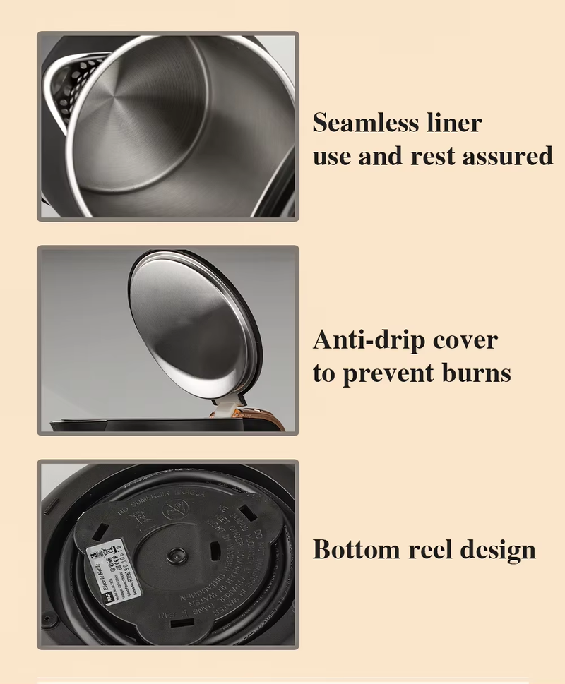 Chaleira elétrica em aço inoxidável de qualidade alimentar